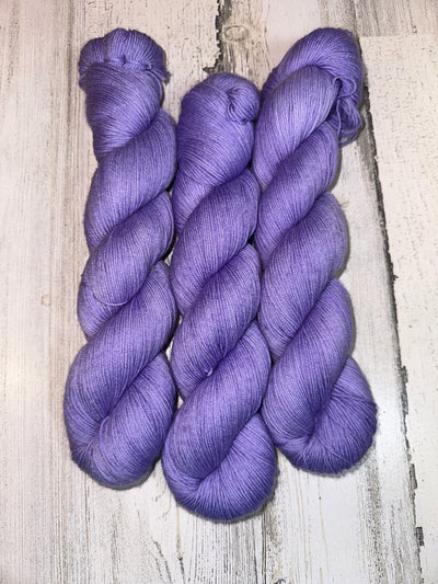 This colorway is a beautiful shade of purple. I got the Luxr DK and it is so soft. Can’t wait to finish this scarf!