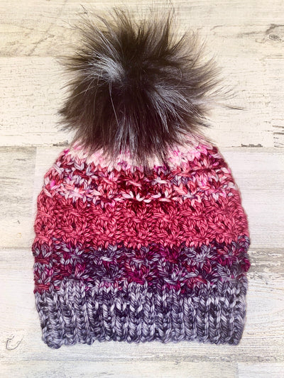 This pattern will work up a beanie size fit. If you would like a slouchy fit, you will need 6 Bulky minis. Add the 6th mini after the 5th and work into rotation. After working 6th mini the second time, start decrease.