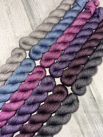 All the goodness of Yak in a convenient mini skein! Our Yak minis have a lovely sheen and drape from silk, luxurious softness from yak, and hardiness from 19.5 micron merino wool. With its good looks and softness you have to feel to believe, our Yak minis are love at first sight. The grey undertones offers even more to love! The beautiful grey heather bare yarn lends a special tonal effect to dyed yarn.