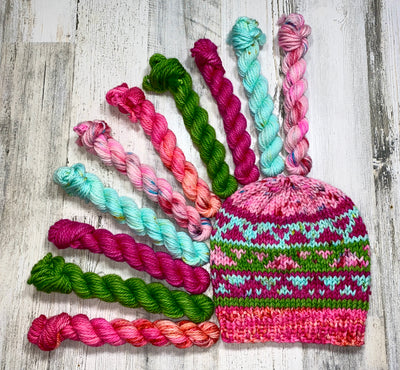 The new knitting pattern by Courtney Flynn of Flynnknit. You can preorder your copy of the book at Flynnknit.com officially releasing September 20, 2022. She chose the colors below you will receive 1 mini, 21yds/20g of each