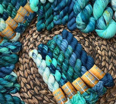 In this kit you will receive 1 mini of each of these 5 colors. Circe, Scylla, Deep Blue Sea, Horned Dilemma, and Sapphire.